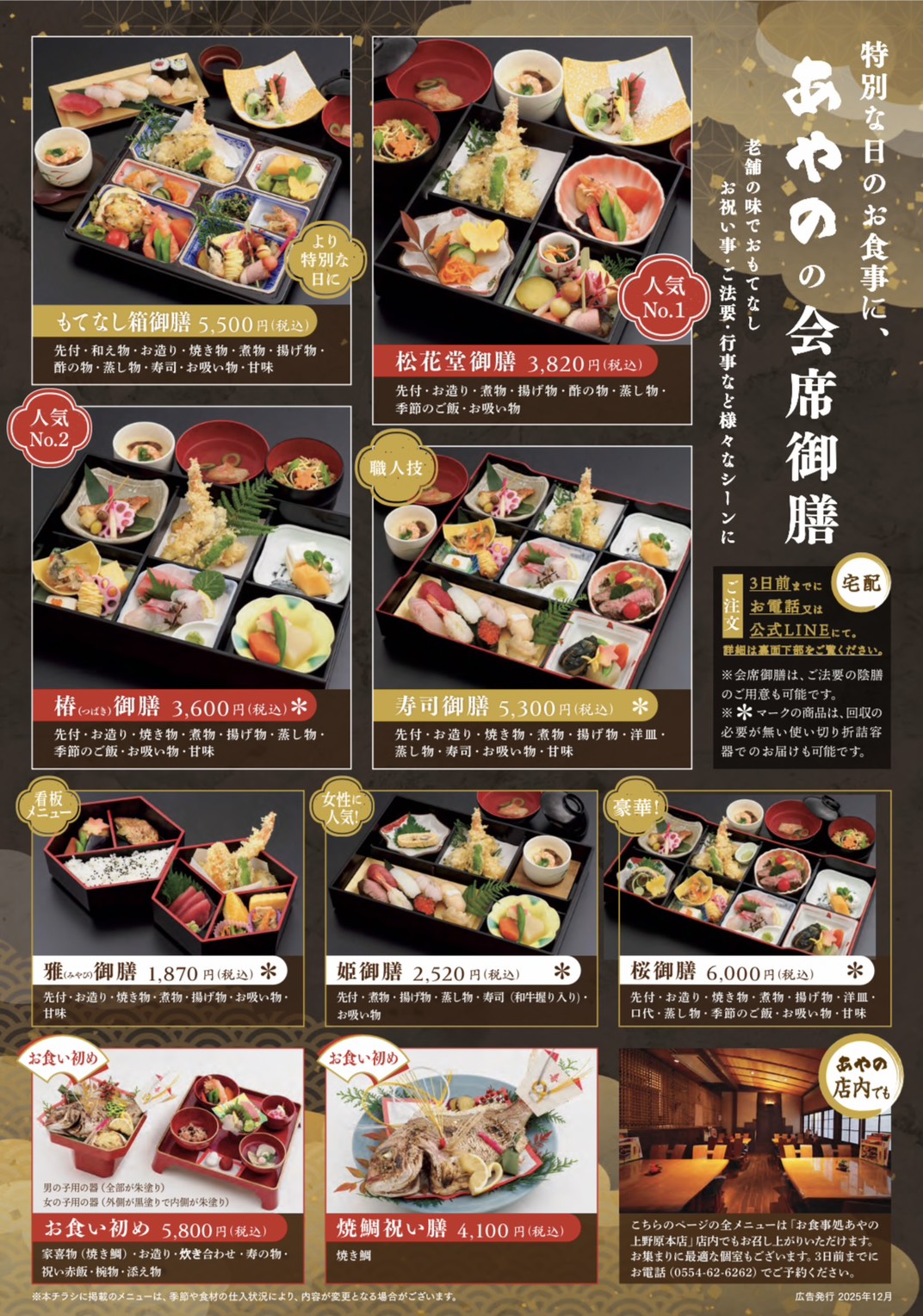 ご予約期限: 前日まで(ギフト・会席膳は3日前まで)